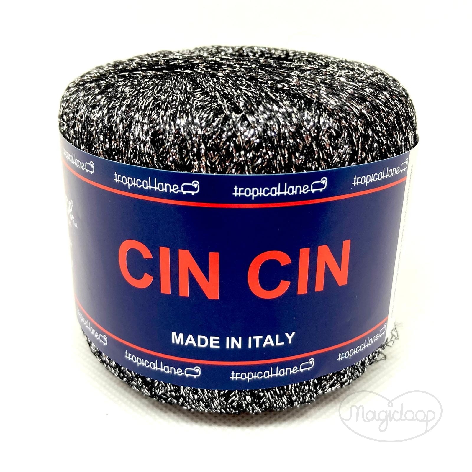 Cin Cin 102 czarno- srebrna fantazyjna błyszcząca Włóczka | Tropical Lane | 60% cupro 40% włókno metalizowane