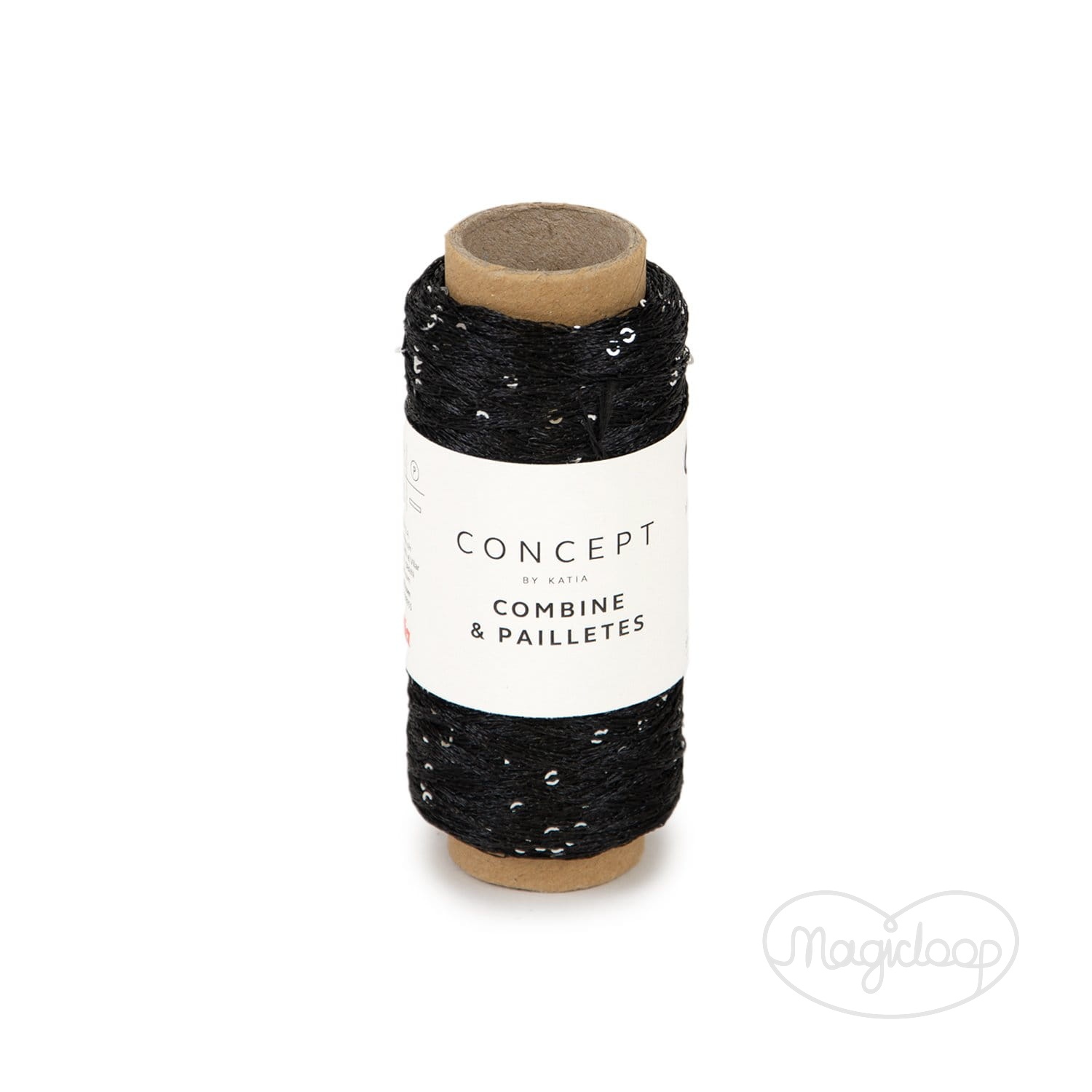Concept Combine & Pailletes 54 Czarny | Włóczka Katia | Cekiny