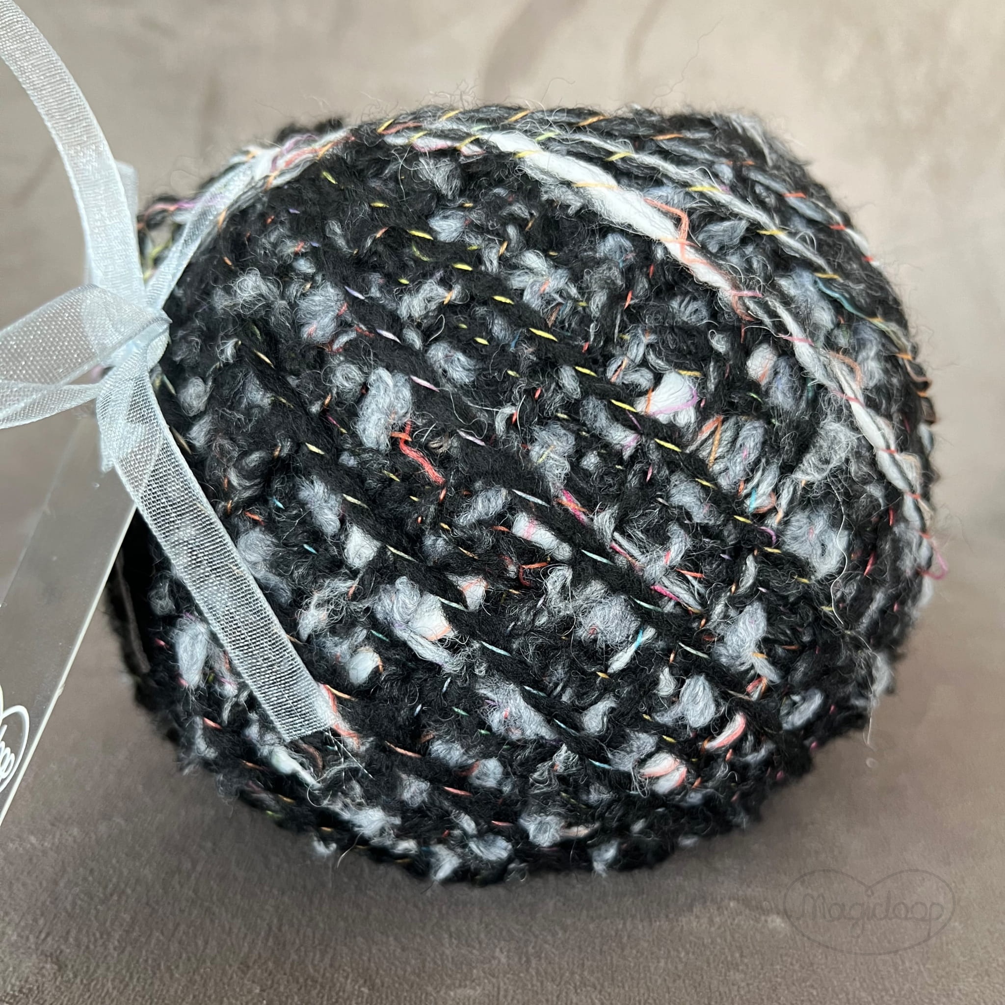 Crazy Black fantazyjna włóczka Magicloop, dominujący kolor czarny