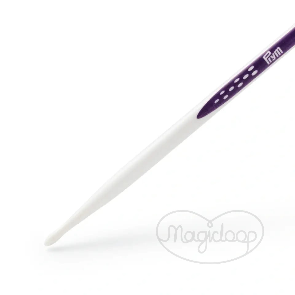 Innowacyjne druty Prym posiadają stalową żyłkę, bardzo elastyczną, powlekaną przeźroczystym plastikiem. Rozwiązanie to powoduje, że żyłka lekko się zgina, ale nie odkształca się, nie prostuje ani nie rozkręca , a włóczka w trakcie robótki przemieszcza się swobodnie. Same druty wykonane są z materiałów syntetycznych przez co są lekkie i bardzo wytrzymałe.