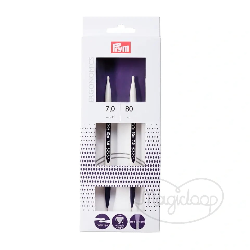 Innowacyjne druty Prym posiadają stalową żyłkę, bardzo elastyczną, powlekaną przeźroczystym plastikiem. Rozwiązanie to powoduje, że żyłka lekko się zgina, ale nie odkształca się, nie prostuje ani nie rozkręca , a włóczka w trakcie robótki przemieszcza się swobodnie. Same druty wykonane są z materiałów syntetycznych przez co są lekkie i bardzo wytrzymałe.