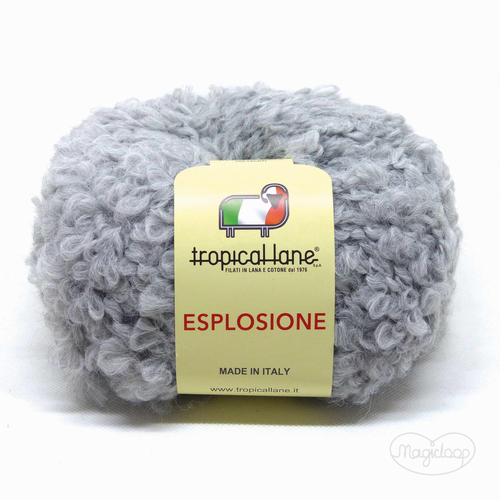 Esplosione to włóczka boucle, czyli o pętelkowa, której struktura nadaje dzianinom pięknego kształtu. Jej grubość i puchatość tworzy futerkowe projekty – a wykonane na szydełku bądź drutach 10mm rosną błyskawicznie! Włóczka boucle jest przyjemna podczas przerabiania, ale warto wziąć do niej druty lub szydełko w kontrastowym kolorze do wybranego barwienia, żeby nie wkłuwać się w jej pętelki, a w oczka dzianiny.