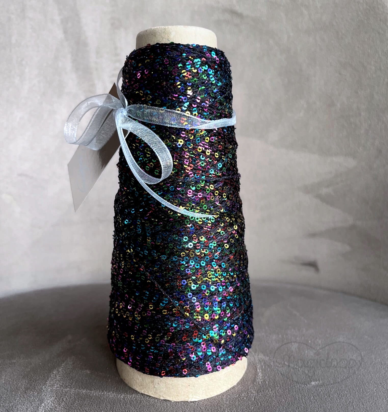 FLASH Nero 50 gr gr, nylon z cekinami, włóczka Magicloop