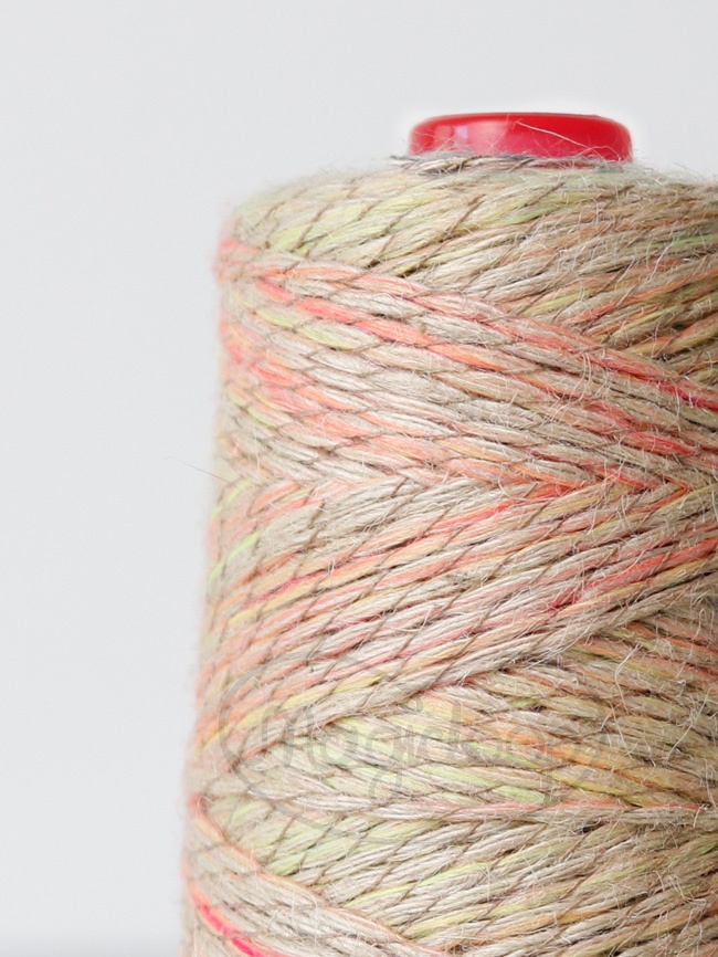 Juta to włóczka wykonana z trzech nitek surowej juty połączonych z jedną nitką drukowanej bawełny. Juta nadaje strukturę, stabilność i charakter, a bawełna łagodzi jej sztywność, tworząc idealną równowagę między wytrzymałością a łatwością pracy. Rezultatem jest włóczka, która przyjemnie układa się w palcach, nie stawia oporu i jest zaskakująco szybka w pracy. Powierzchnia zachowuje naturalny, autentyczny wygląd, wzbogacony błyskiem koloru, który czyni ją idealną, jeśli kochasz dotyk juty, ale nie chcesz rezygnować z żywych odcieni.