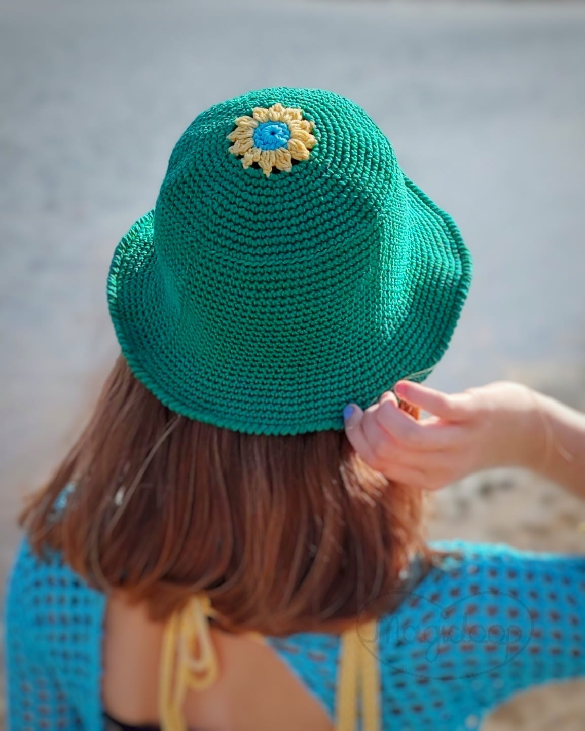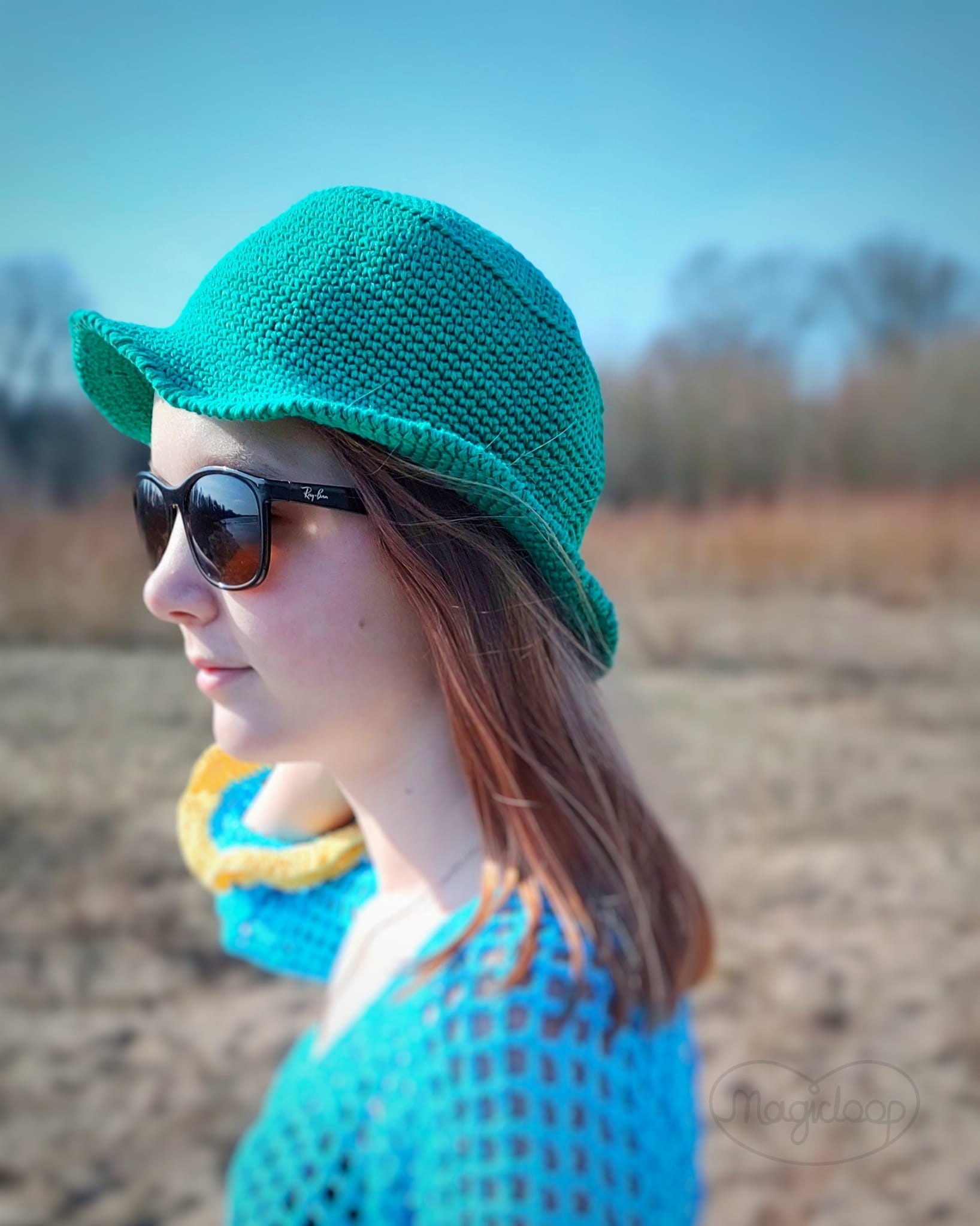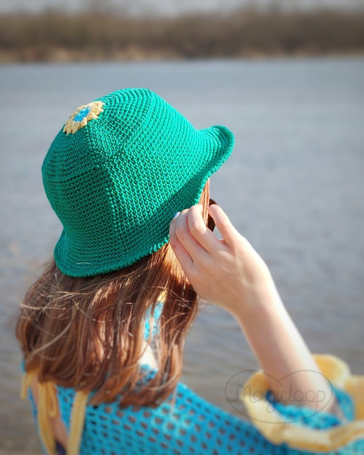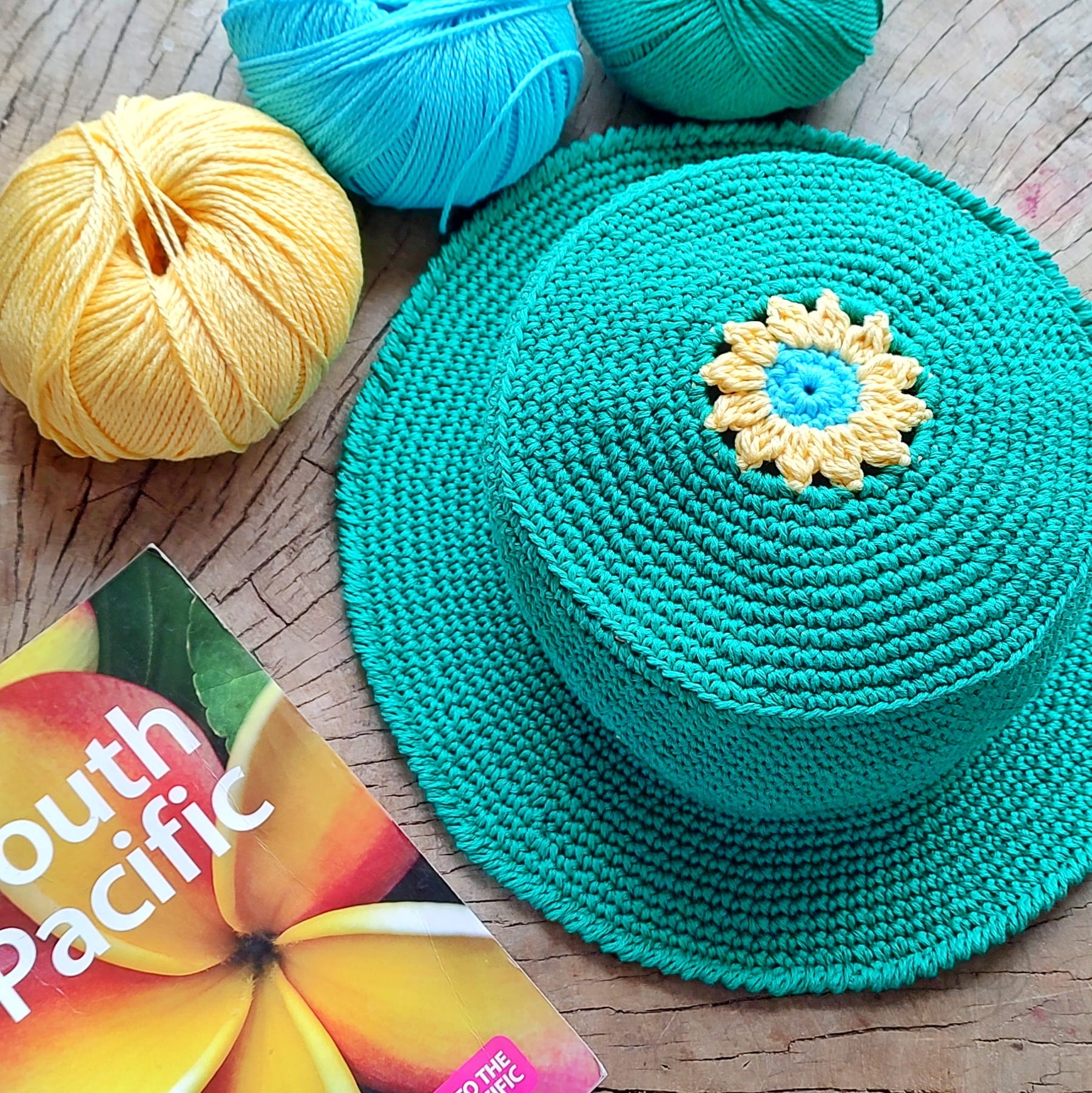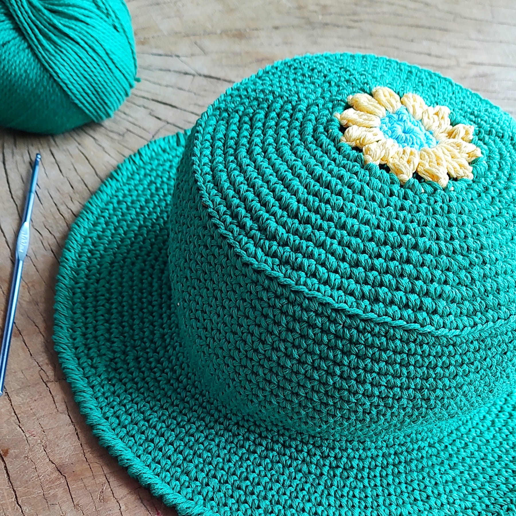 Kapelusz stokrotka- wzór szydełkowy na bawełniany kapelusz Magicloop z włóczki Brasil2