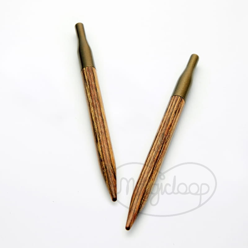Lekkie druty drewniane, laminowane, do łączenia z każdym rodzajem żyłek Knit Pro, o różnej długości. Dostępne są także pasujące do nich brązowe żyłki z kolekcji GINGER. Komplet zawiera 2 szt. końcówek , w wybranym rozmiarze. Komplet nie zawiera żyłki.