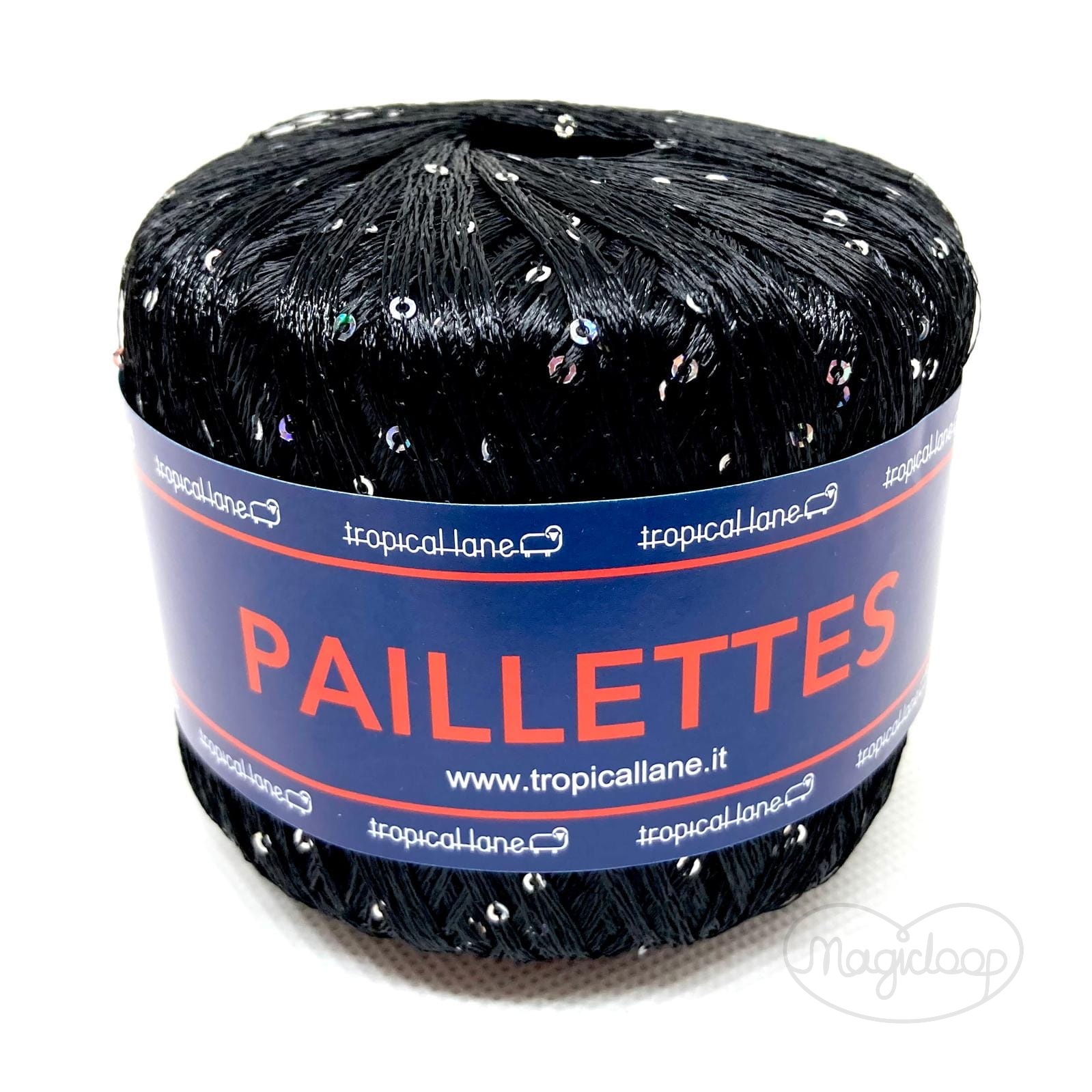 Włóczka Paillettes to wzmocniona poliestrowa nić ubogacona cekinami co 6 centymetrów. Cekiny są małe i błyszczące co daje w dzianinach elegancki i charakterystyczny efekt. Nić Paillettes nadaje się znakomicie do tego by pracować nią jako druga nitką do fantazyjnych projektów: błyszczących topów, mieniących sukienek, szalonych torebek. Po błyszczące inspiracje wystarczy przejrzeć najnowsze pokazy domu mody Chanel – gdzie mieniące cekiny pojawiają się w projektach torebek, żakietów i spódnic.