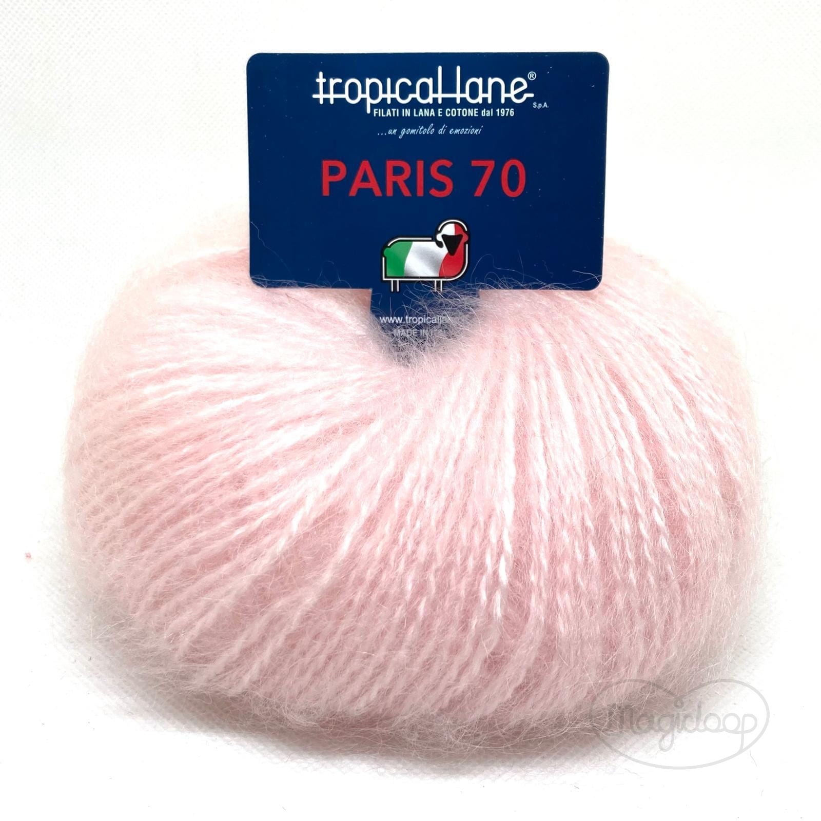 Paris70 jest jedną z najbardziej lubianych włóczek Tropical Lane – zawdzięcza to uniwersalności! Sprawdzi się jako pojedyncza nitka w lekkich swetrach typu chmurka oraz chustach. Znakomicie radzi sobie jako druga albo trzecia nitka w mlenażu – znakomicie blenduje się z kolorami fantazyjnymi czy włóczkami typu Paillettes ale też z podobnymi sobie, ubogacając dzianinę swoim długim i przyjemnym włoskiem.