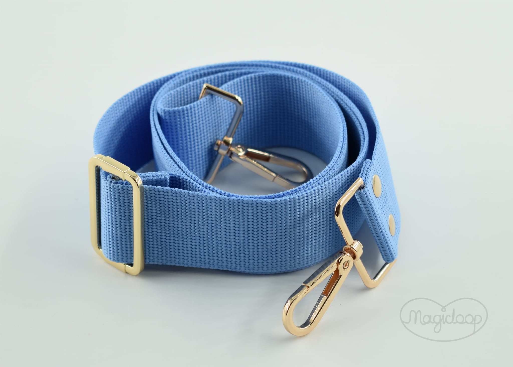 Pasek reg. 130 cm/4 cm niebieski/zło