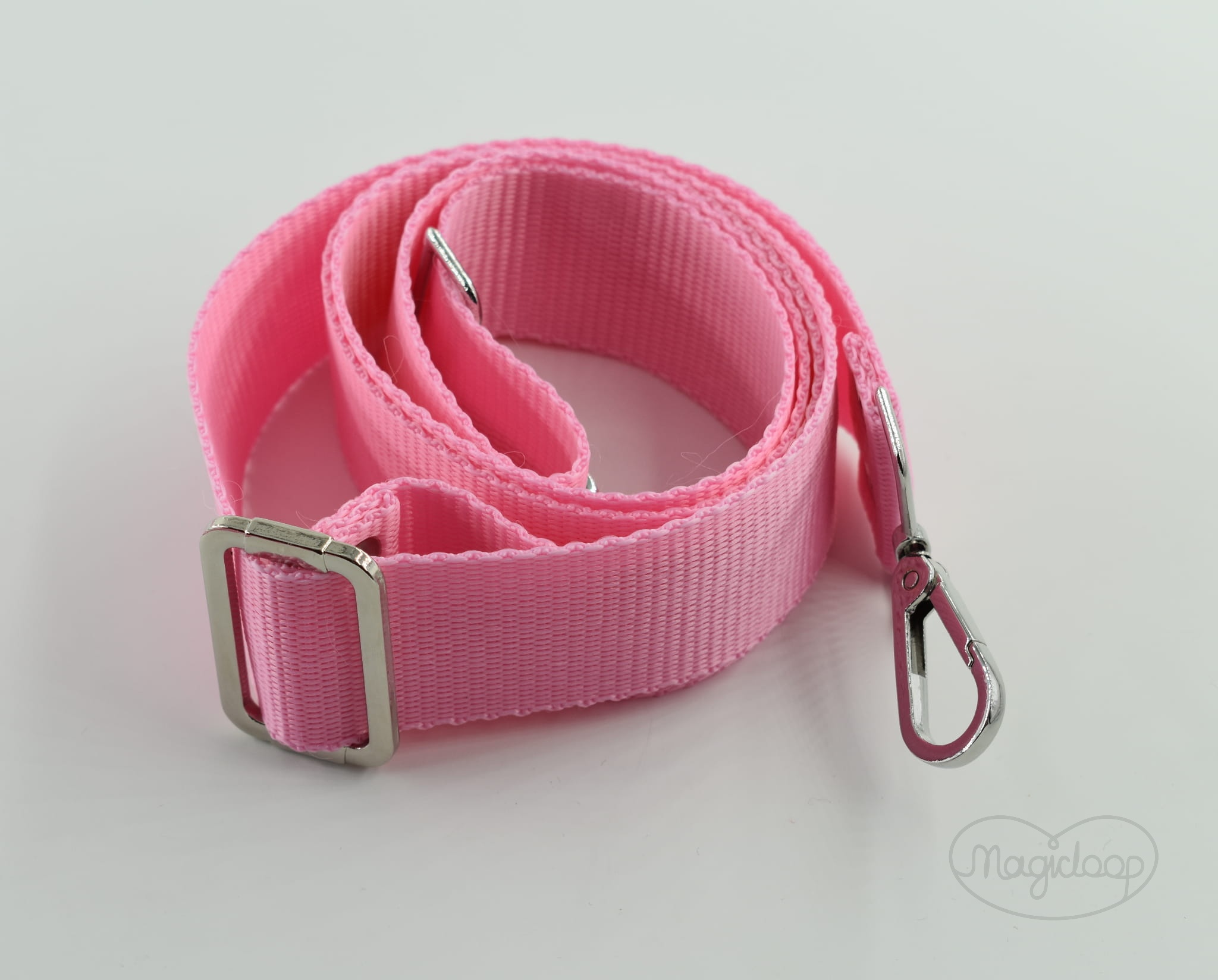 Pasek reg. 130 cm/4 cm różowy jasny/srebrne dodatki