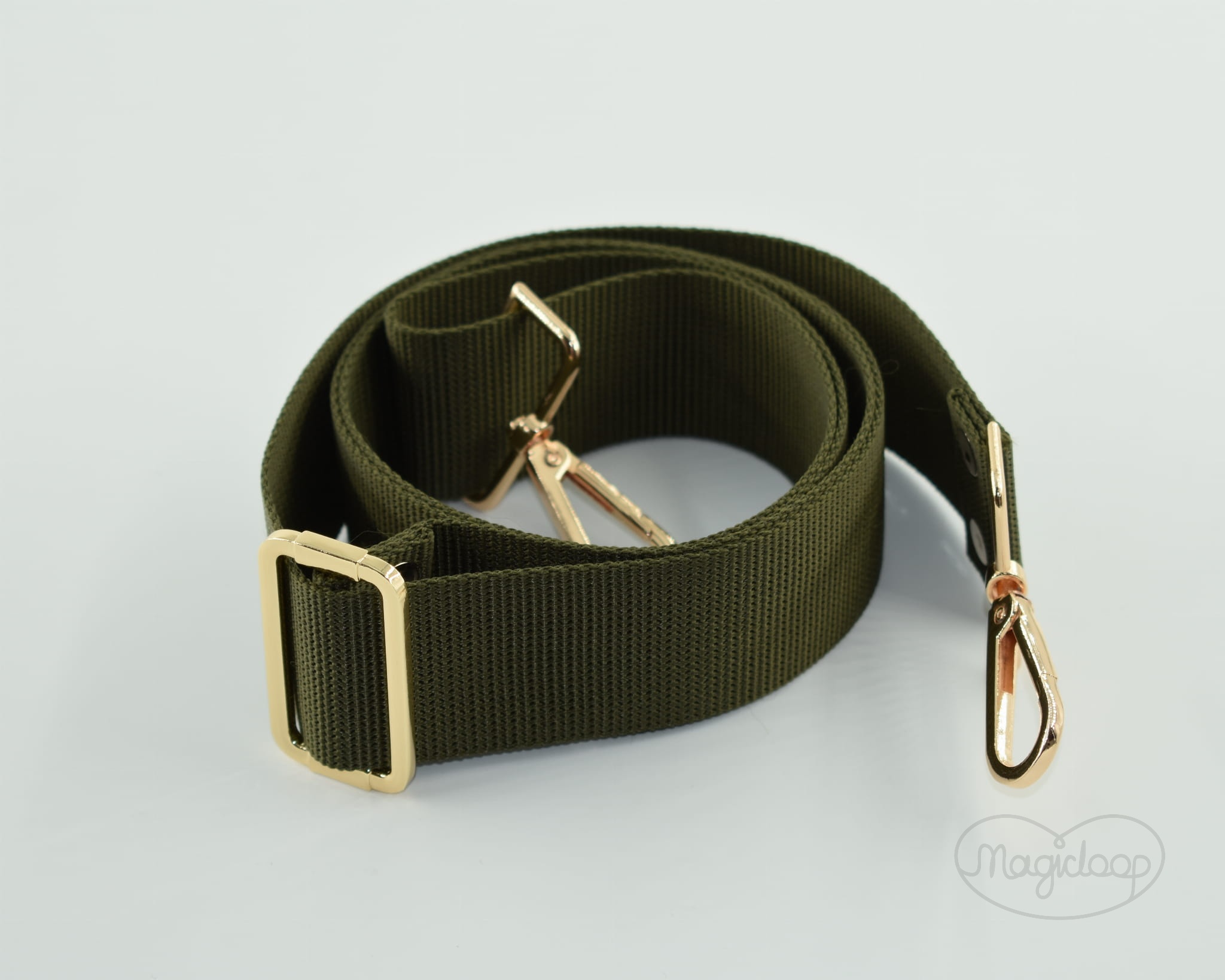 Pasek regulowany 130 cm/4 cm khaki/ złote dodatki
