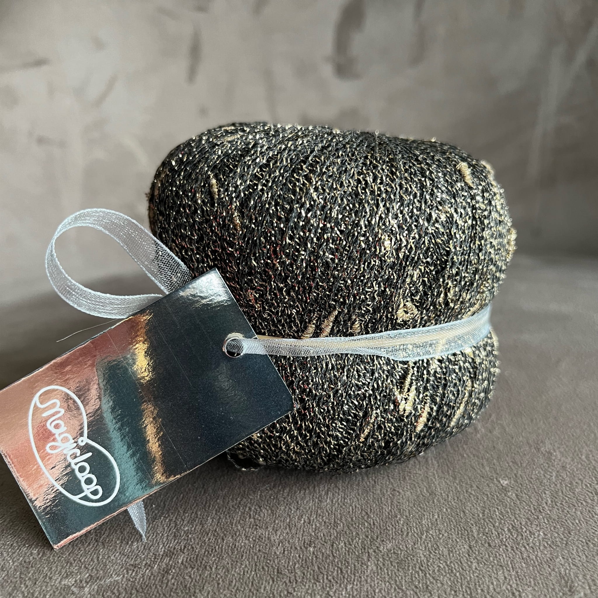 Prince NERO czarna wiskoza EcoVero ze złotymi nopkami, fantazyjna włóczka Magicloop