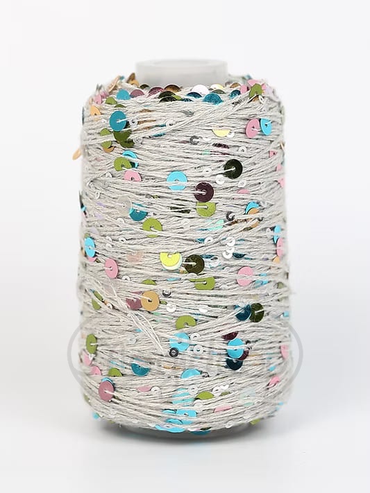 Skład przędzy: 55% Bawełna, 45% PVC, cekiny