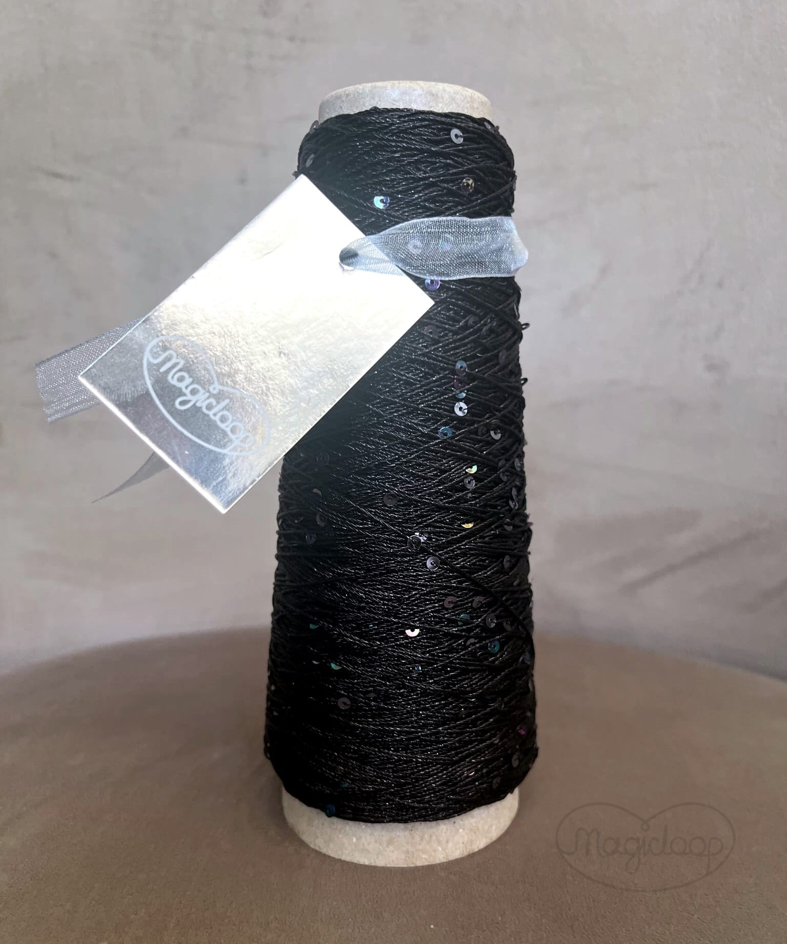 Queen NERO, czarna wiskoza z cekinami, włóczka Magicloop