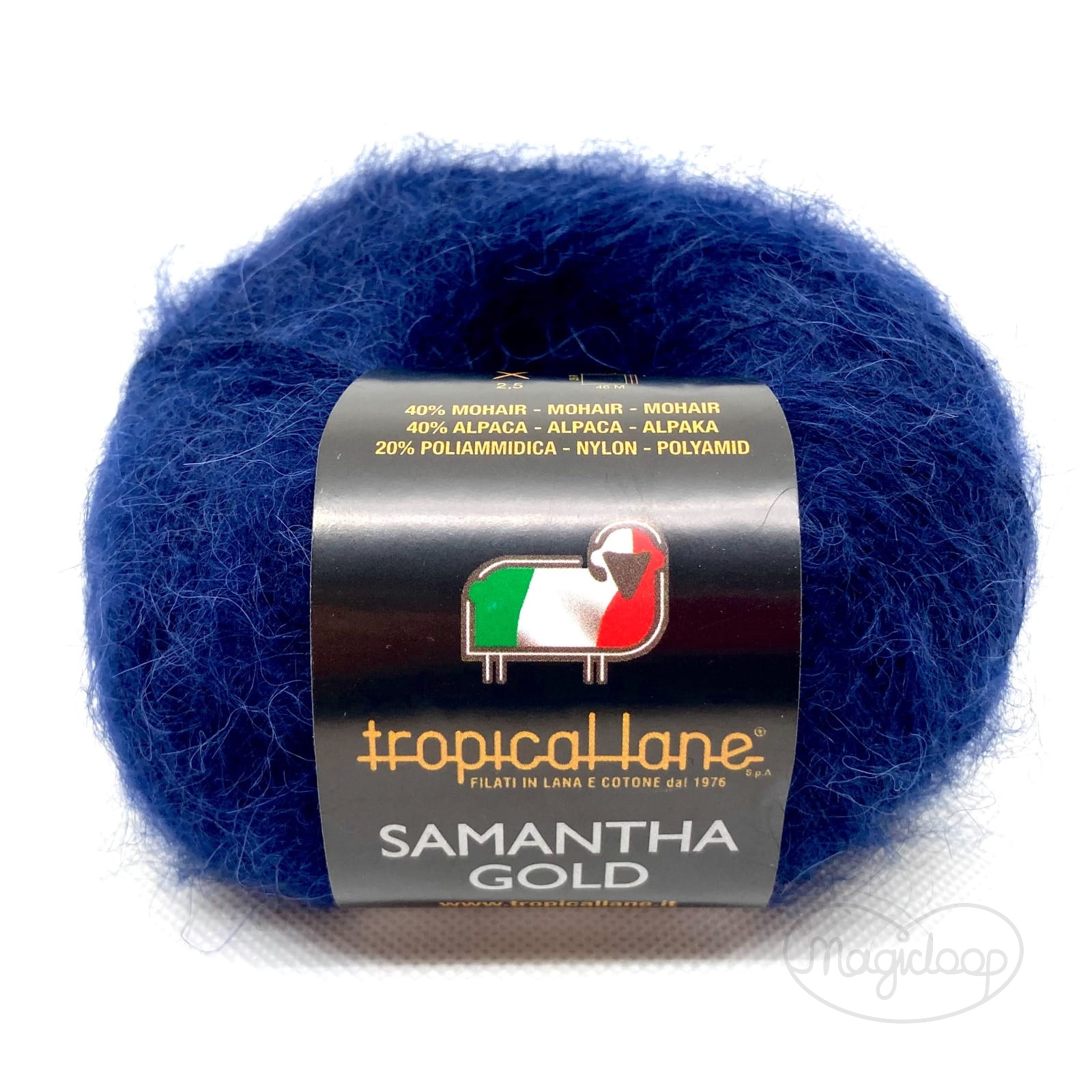 Samantha Gold to cudowna włóczka dla fanek kid moheru – czyli delikatnego moheru pochodzącego od młodych kóz – oraz miękkiej baby alpaki. Jej delikatność otula ciepłem i tworzy idealne lekkie projekty. Połączenie tych dwóch włókien tworzy cudownie lekką i wytrzymałą przędzę, wzmocnioną nylonem. Włóczka posiada cudowny, średniodługi włosek, który nadaje pięknej struktury każdej dzianinie. Sprawdzi się jako pojedyncza nitka oraz jako druga nitka w projekcie.