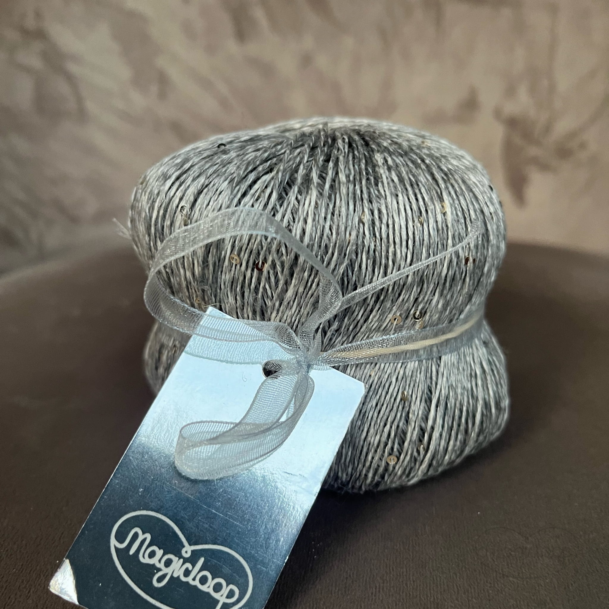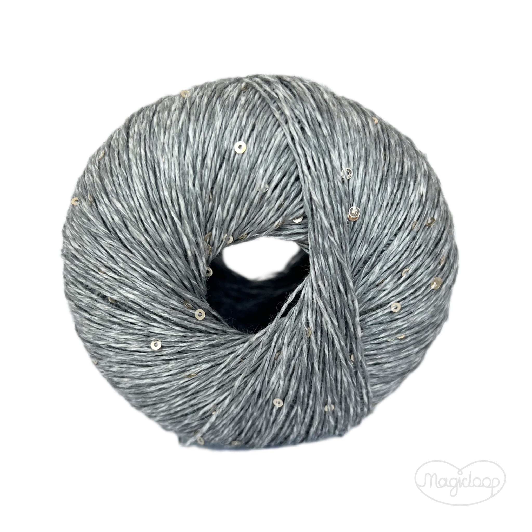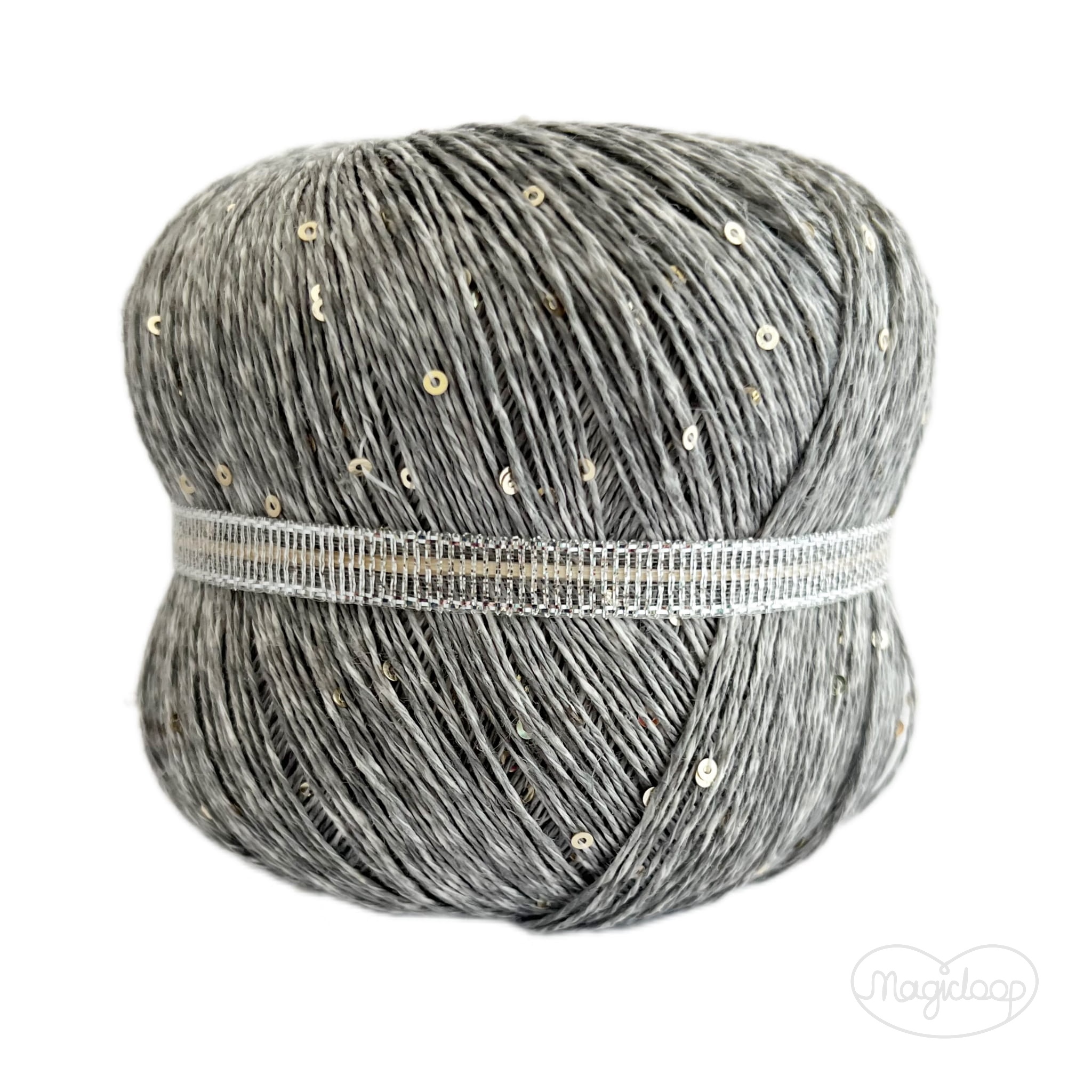 Shine Griggio Szary 3, len z cekinami, włóczka Magicloop