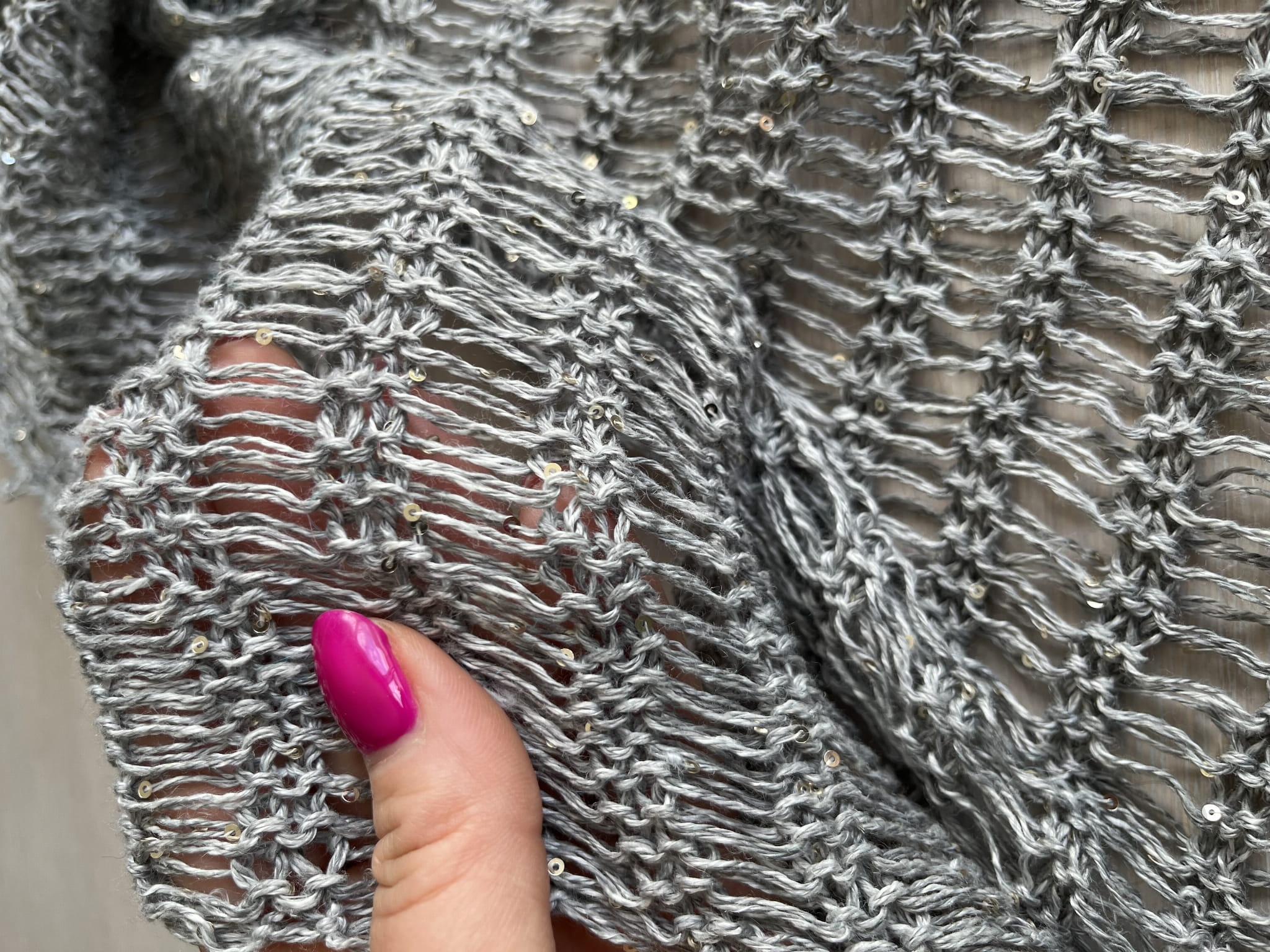 Skład: 94% len (w tym 4% cekiny 2mm), 6% nylon