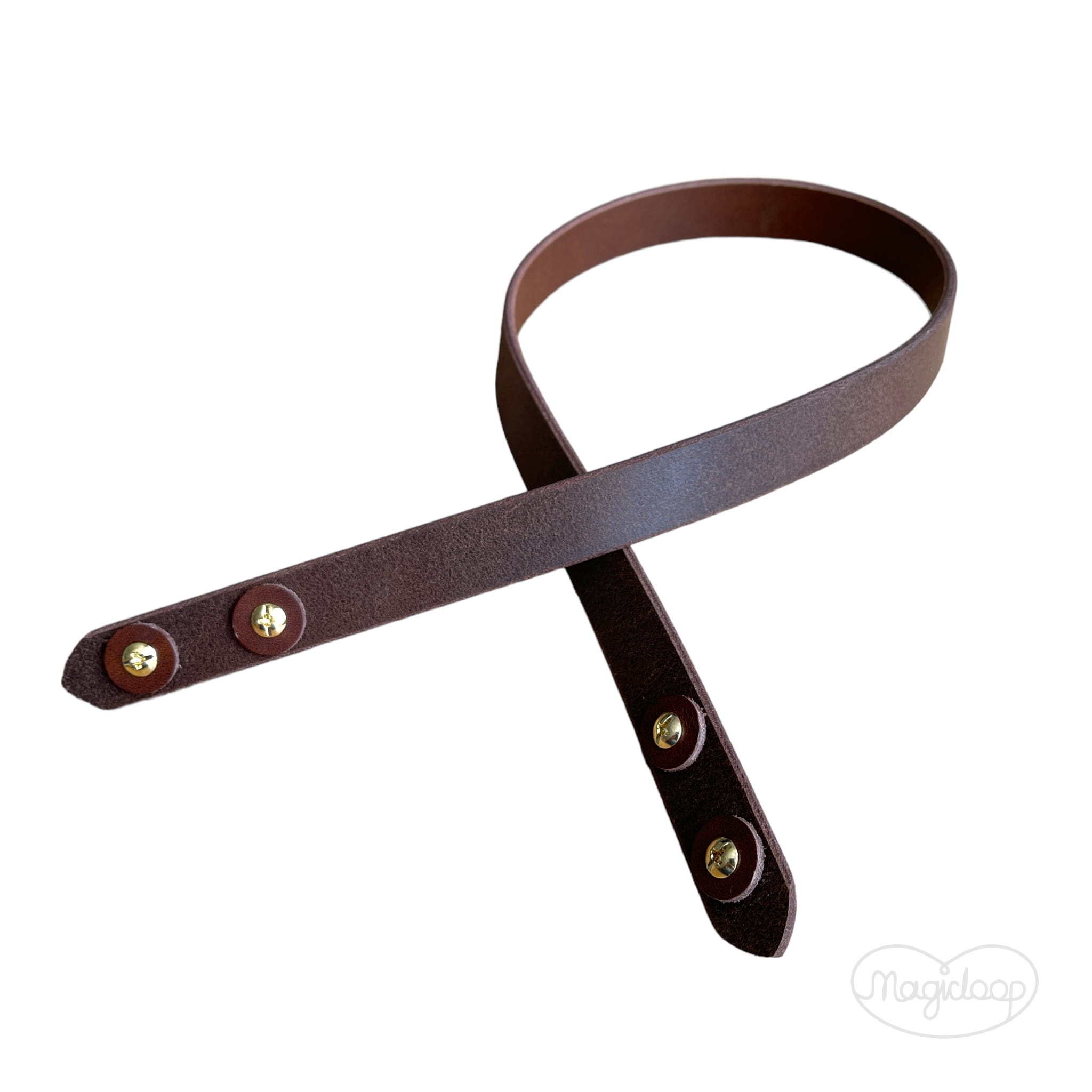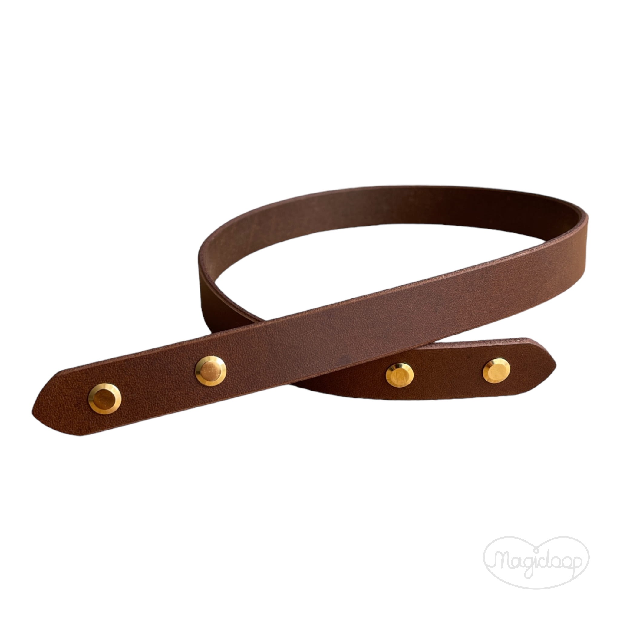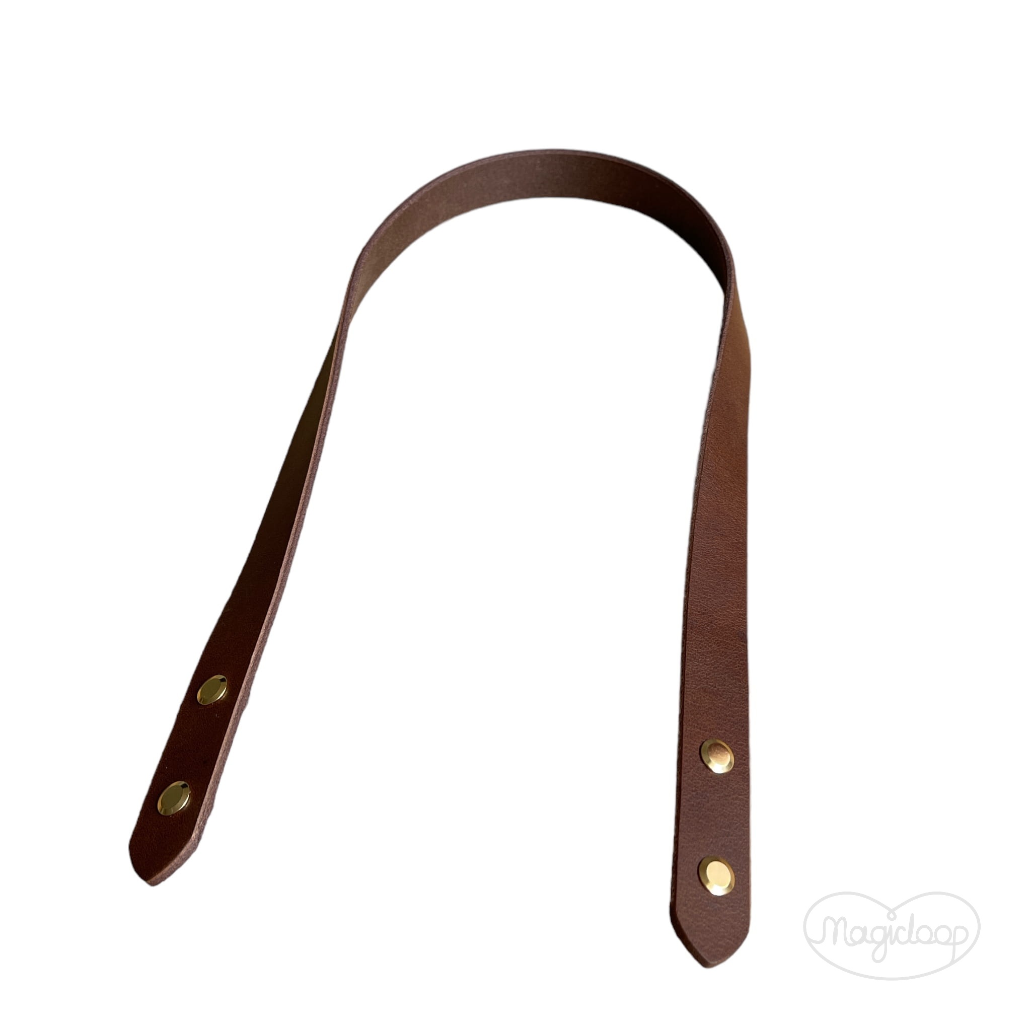 Skórzane ucho do koszyka / pasek do torebki 65 cm, wkręcany, kolor brąz ciemny , złote okucia