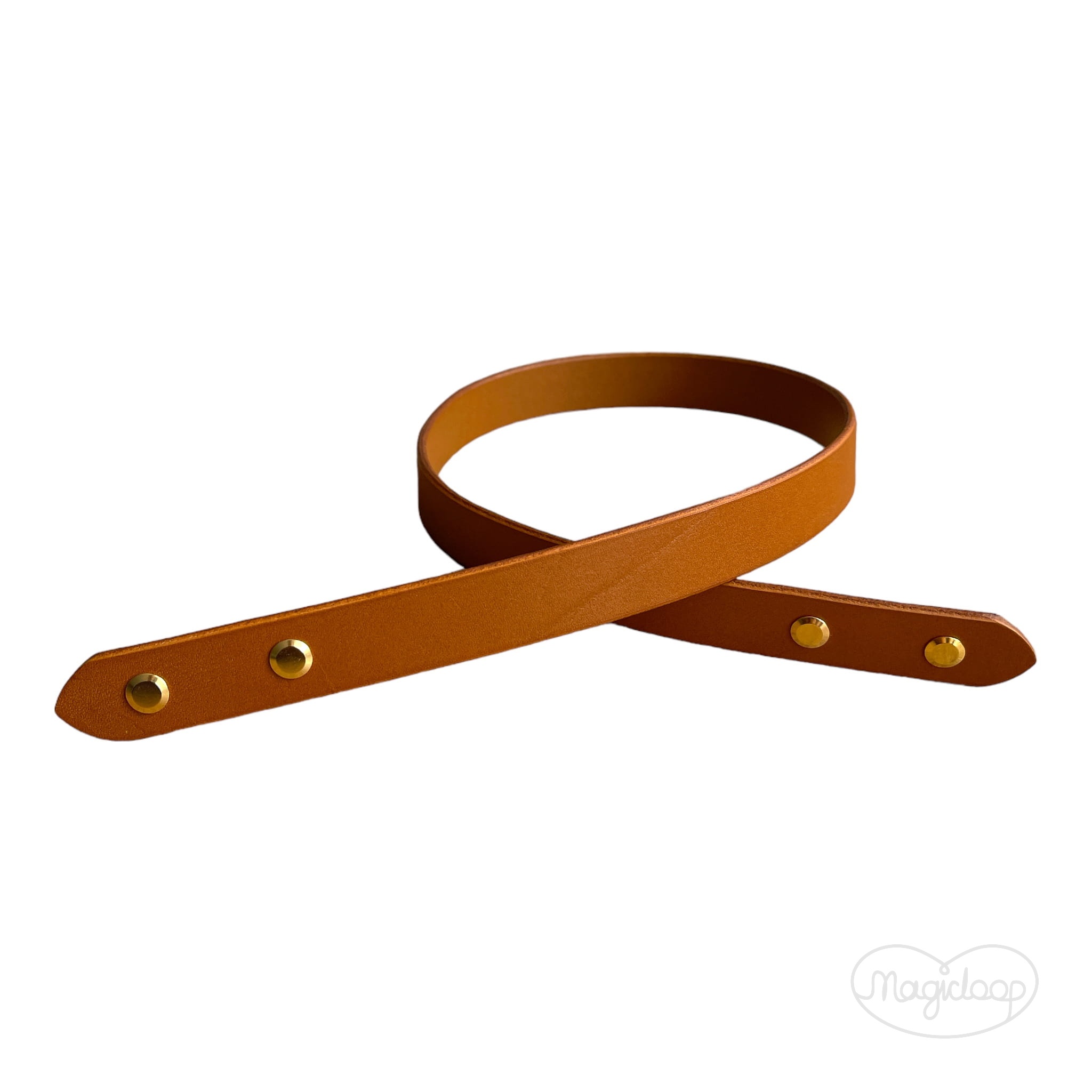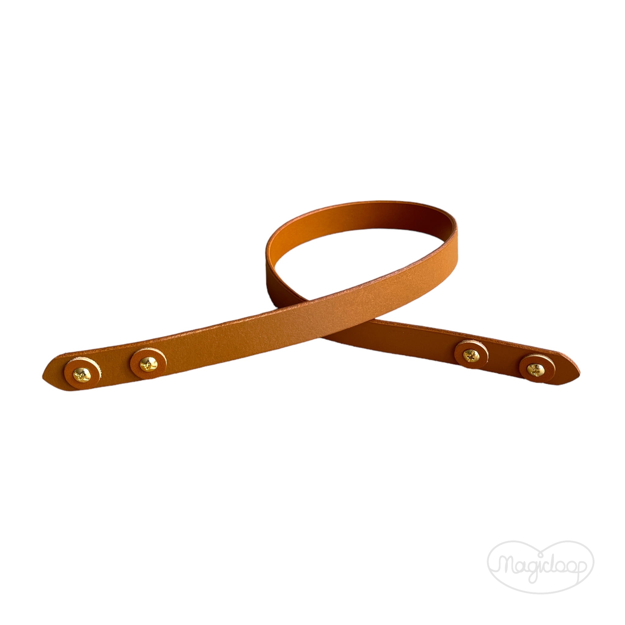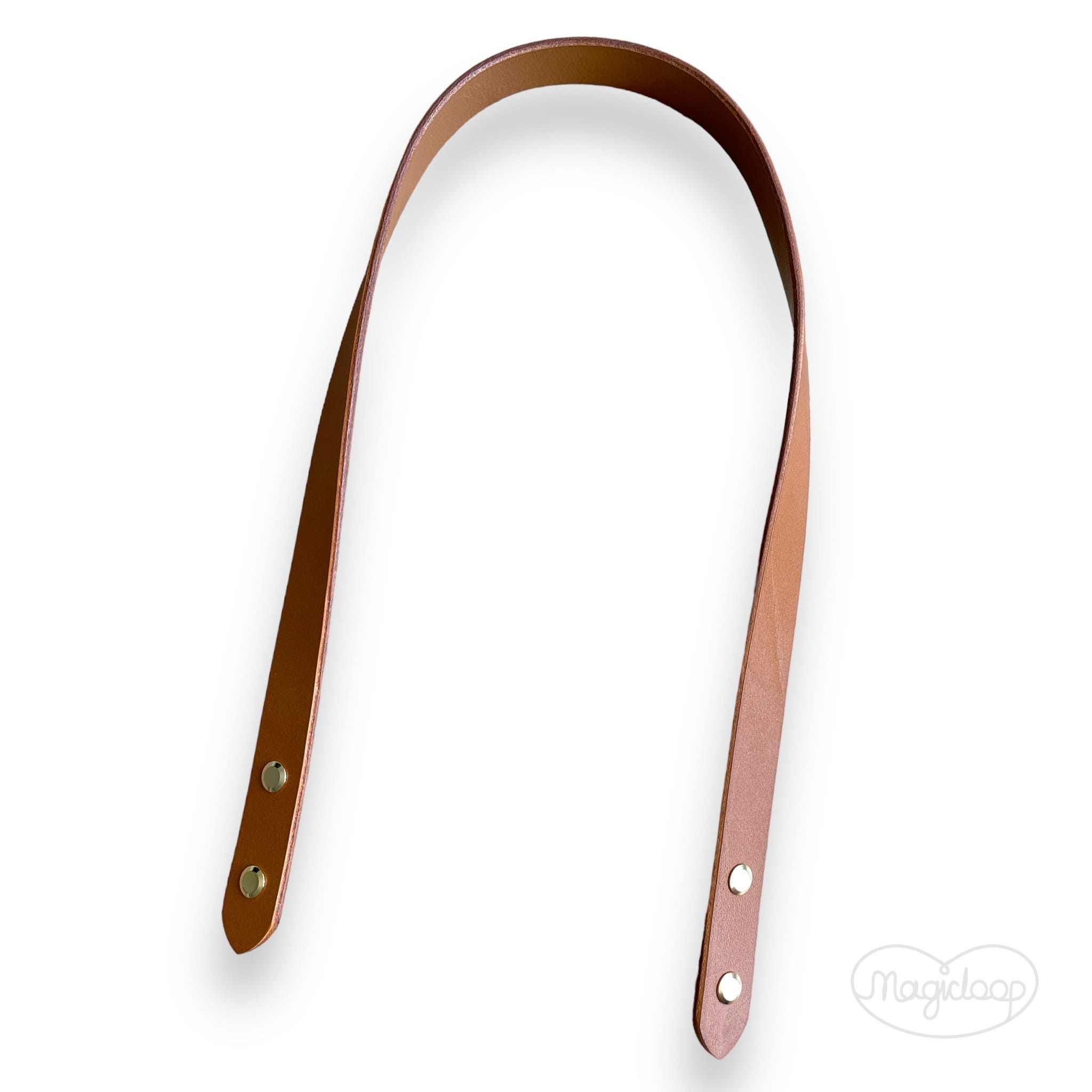 Skórzane ucho do koszyka / pasek do torebki 65 cm, wkręcany, kolor koniak , złote okucia