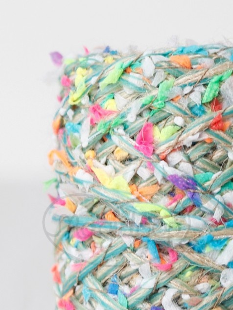 Włóczka Technicolor powstaje z połączenia czterech nitek naturalnej juty z jaskrawo kolorową poliamidową włóczką łańcuszkową. Chodzi o połączenie dwóch pozornie odległych światów: rustykalnego charakteru niebarwionej, surowej juty i energii superkolorowej włóczki technicznej.