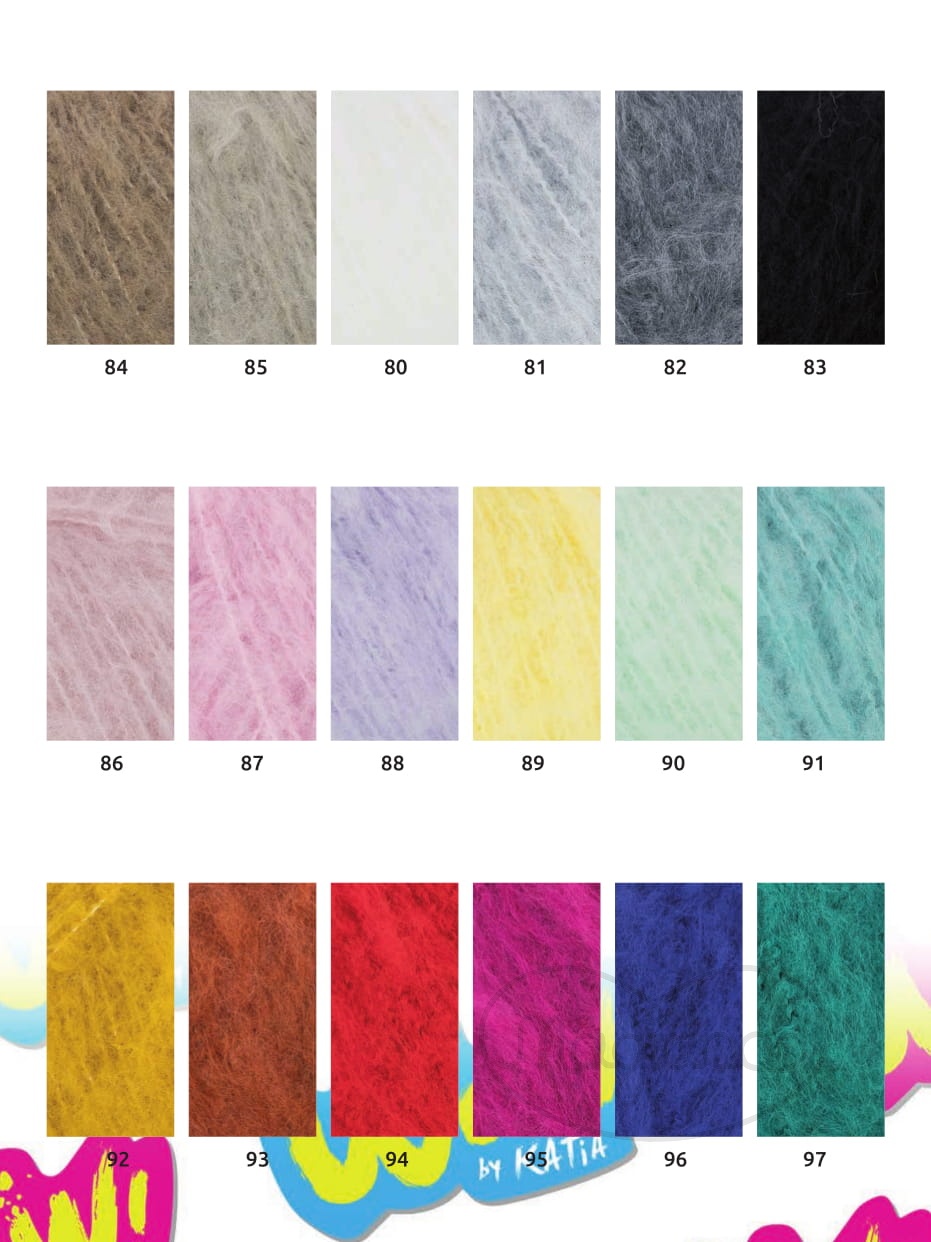 Skład; 65% akryl, 17% poliamid, 9% wiskoza, 9% wełna
