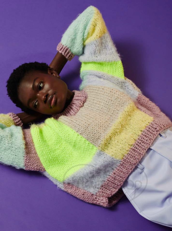 Na kwadratowy o wymiarach 10x10cm nabierz 12 oczek i przerób 18 rzędów.