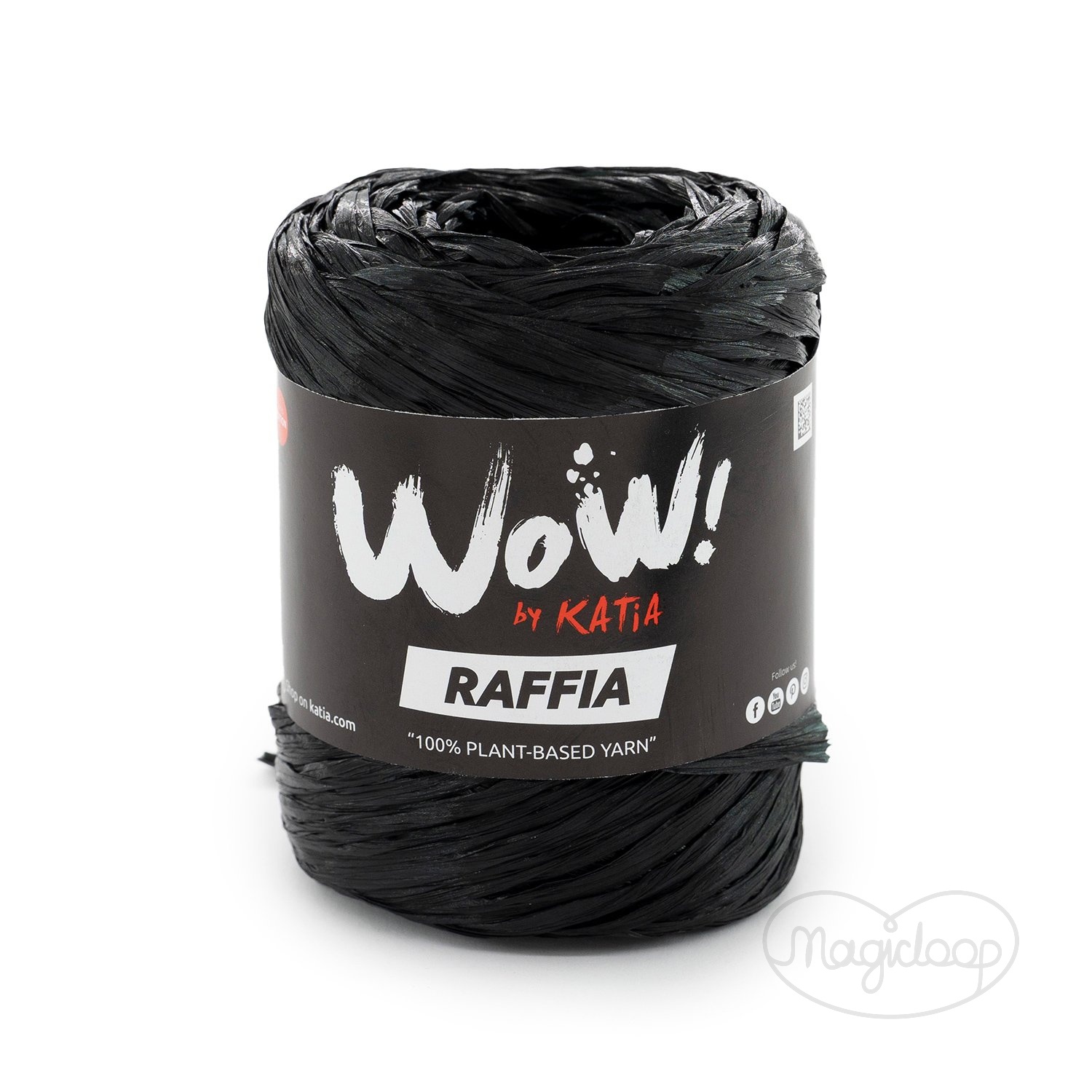 WOW Raffia 62 Czarny | Włóczka Katia | Błyszcząca włóczka rafiowa