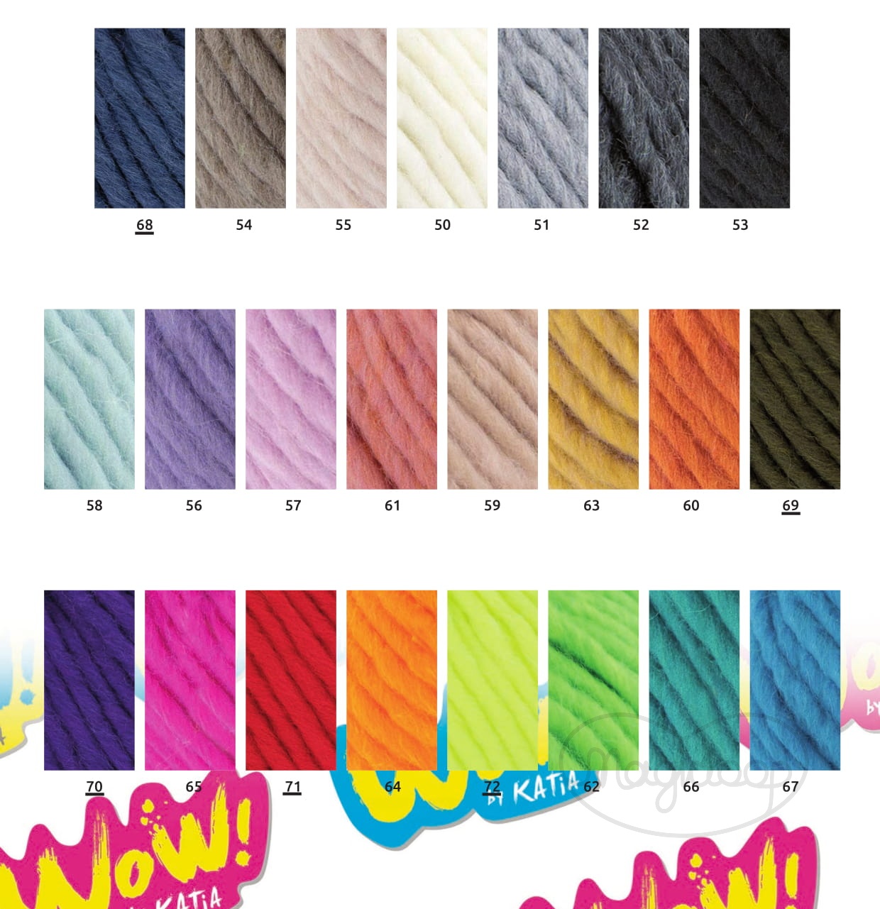 Wow marki Katia to miękka włóczka, o średniej gramaturze,  do łatwego i szybkiego dziergania na 9-10 mm drutach.