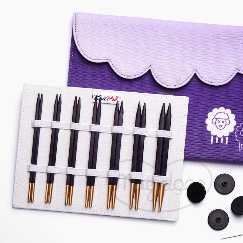 Ten zestaw krótkich drutów z drewna indygo idealnie nadaje się do projektów o mniejszym obwodzie, takich jak czapki, rękawy i malutkie artykuły dziecięce lub ubranka dla lalek.