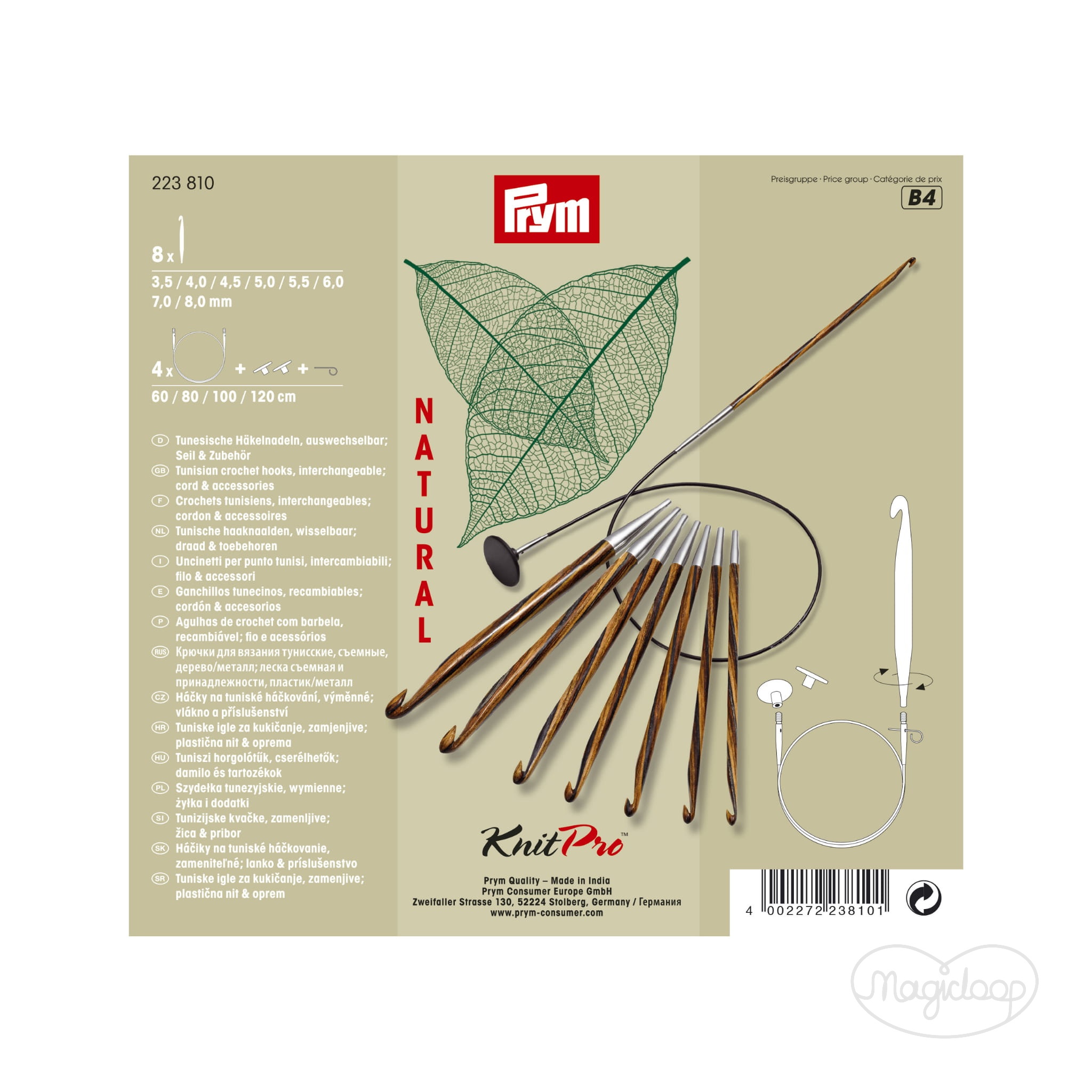 Zestaw końcówek drutów z serii NATURAL w rozmiarach 4-10 PRYM KNIT PRO 223-800 do łączenia żyłką