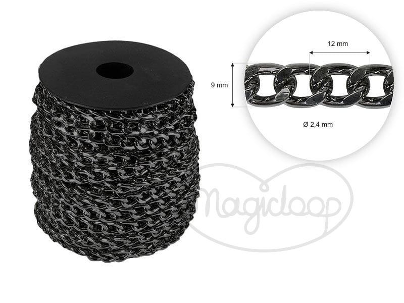 łańcuszek do torebki, ozdobny 10-13mm, nikiel czarny, na metry