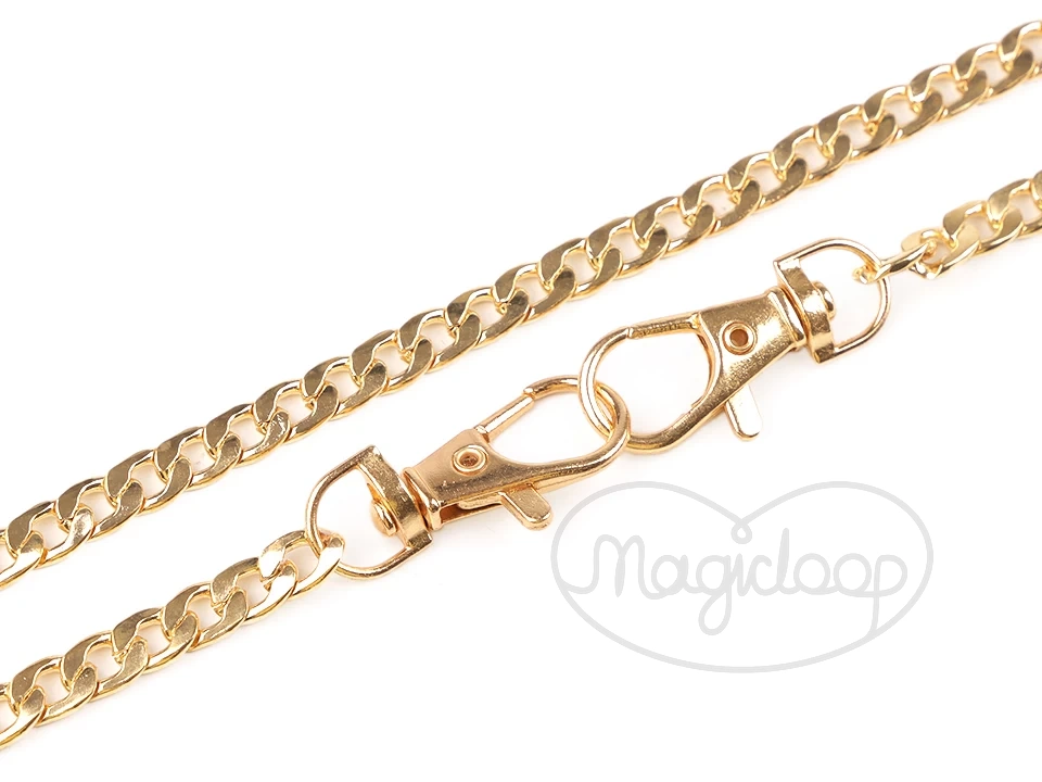 łańcuszek do torebki płaski 115 cm z karabińczykami, delikatny , złoty